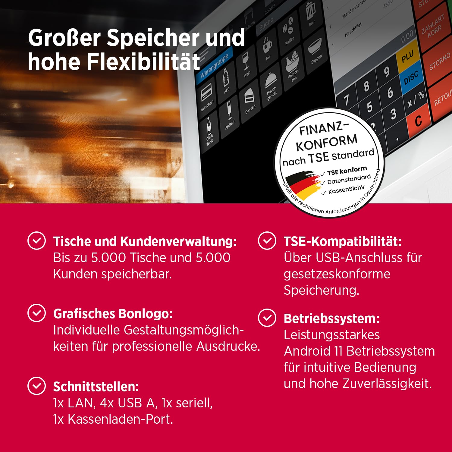 - Ideal für Gastronomie und Handel, z. B. Cafés, Restaurants, Boutiquen