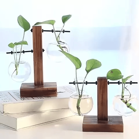 Transparent Bulb Vase with Wooden Stand | Stylish Hydroponic Decor