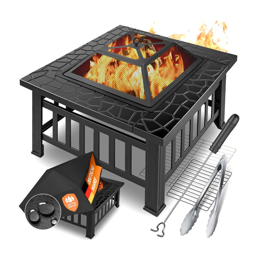 KESSER® fire pit with grill grate & grill tongs: fire bowl, BBQ grill with spark guard