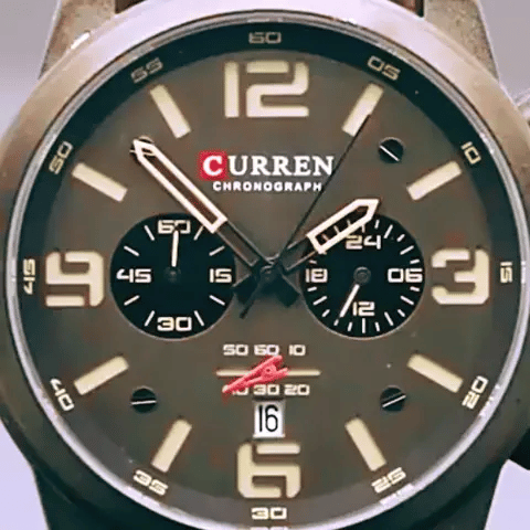 CURREN Luxury Chronograph Quartz Watch for Men with Leather Strap