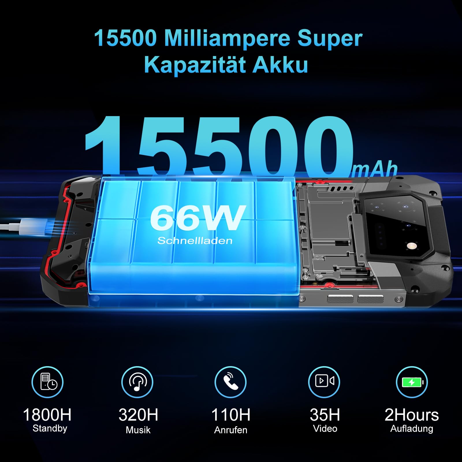 Tank 2 Outdoor Dual SIM Smartphone with Projector & Night Vision (24GB RAM+512GB Storage, 15500mAh)