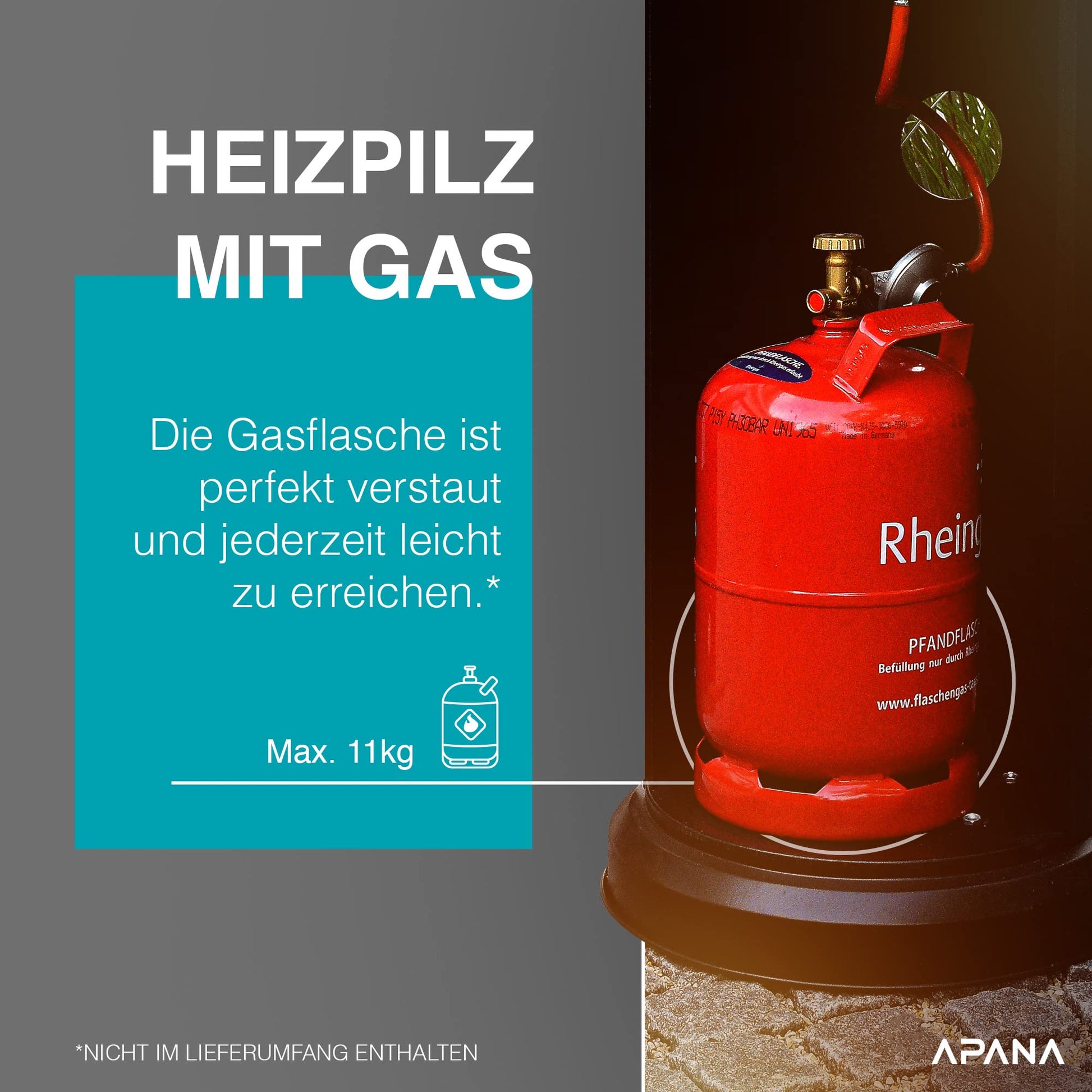 APANA 'Bellamente ONE' gas heater (14kW) for garden with transport wheels & automatic switch-off