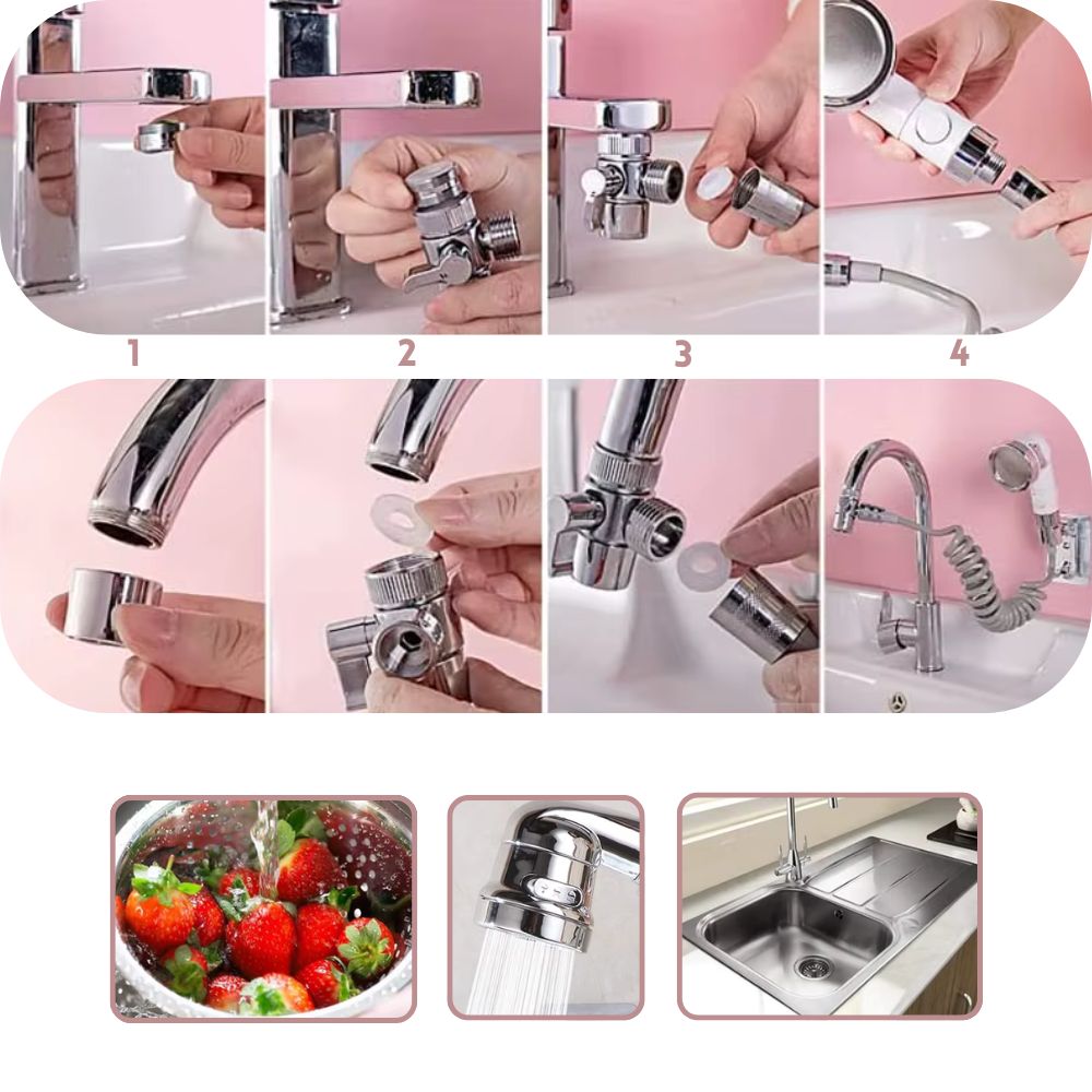 Versatile: Ideal for kitchens, bathrooms or as a flexible hairdressing set. Optimize your daily cleaning routines with this practical, easy-to-install adapter set!