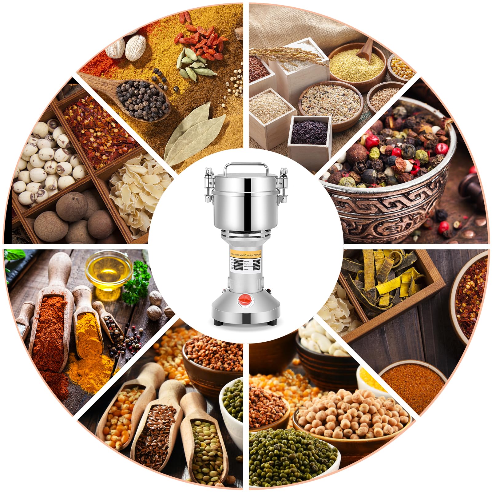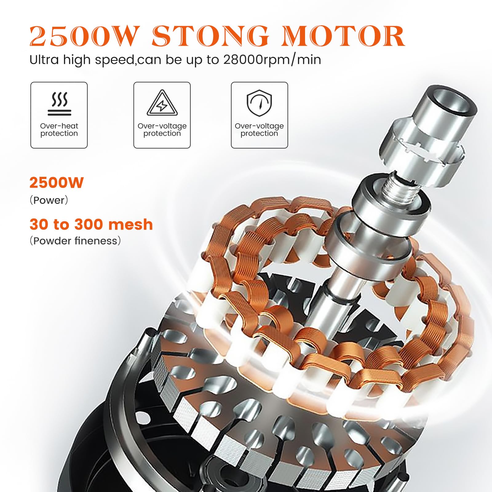 Electric grain mill (500g) made of stainless steel: High speed with 28000rpm powerful motor