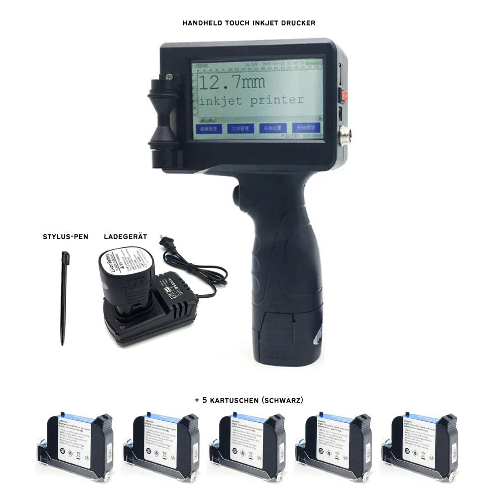 Handheld Touch Inkjet Printer (4.5 Inch) incl. 5 Cartridges | 2-12.7mm Print Height, 600 DPI, 2800mAh