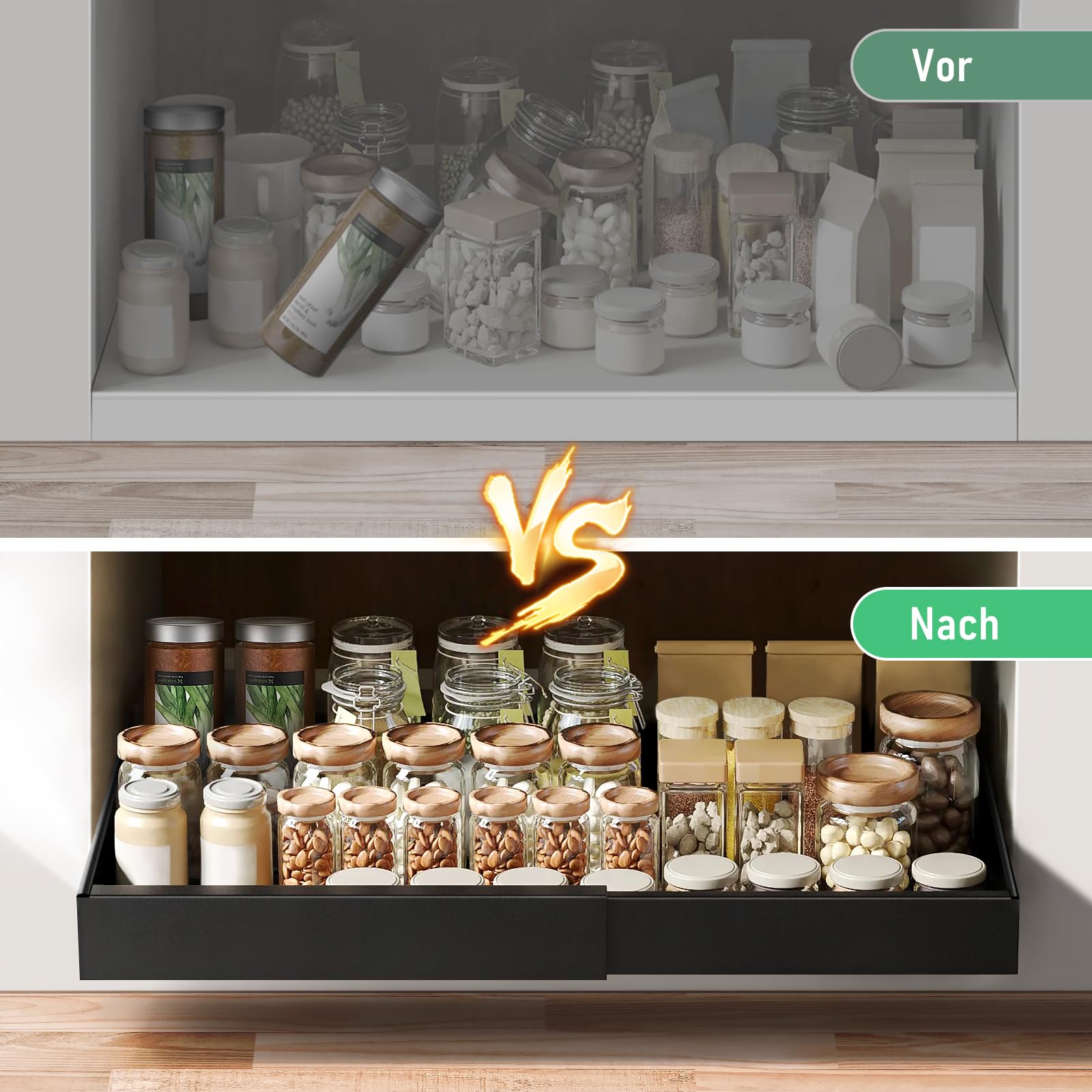 ICARE Adjustable Carbon Steel Telescopic Drawer (32-52cm): Extendable Kitchen Organizer