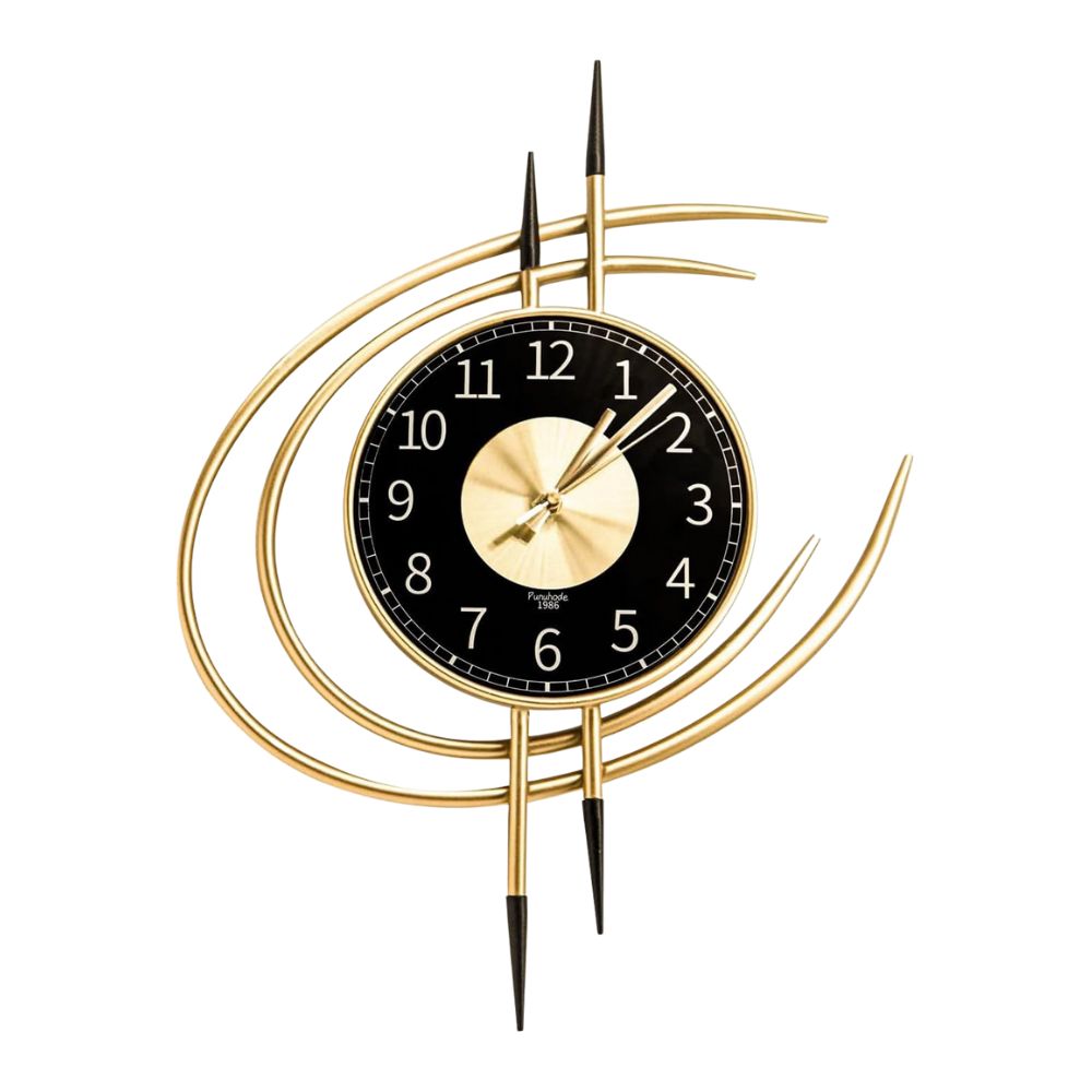Large modern decorative wall clock (54cm) without ticking noise in gold-black design