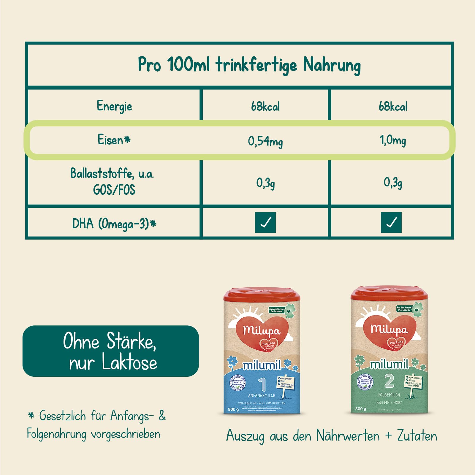 Milupa Milumil 2 is an ideal follow-on milk for babies from 6 months and is a perfect match for complementary foods.