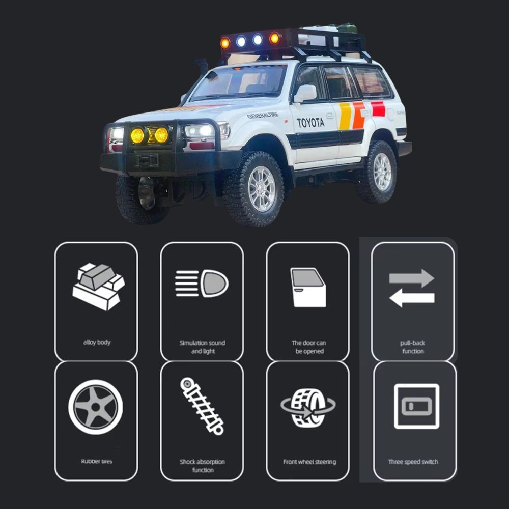 TOYOTA Land Cruiser LC80 (1:24) Off-Road Toy Car with Light & Sound, Pull-Back Function