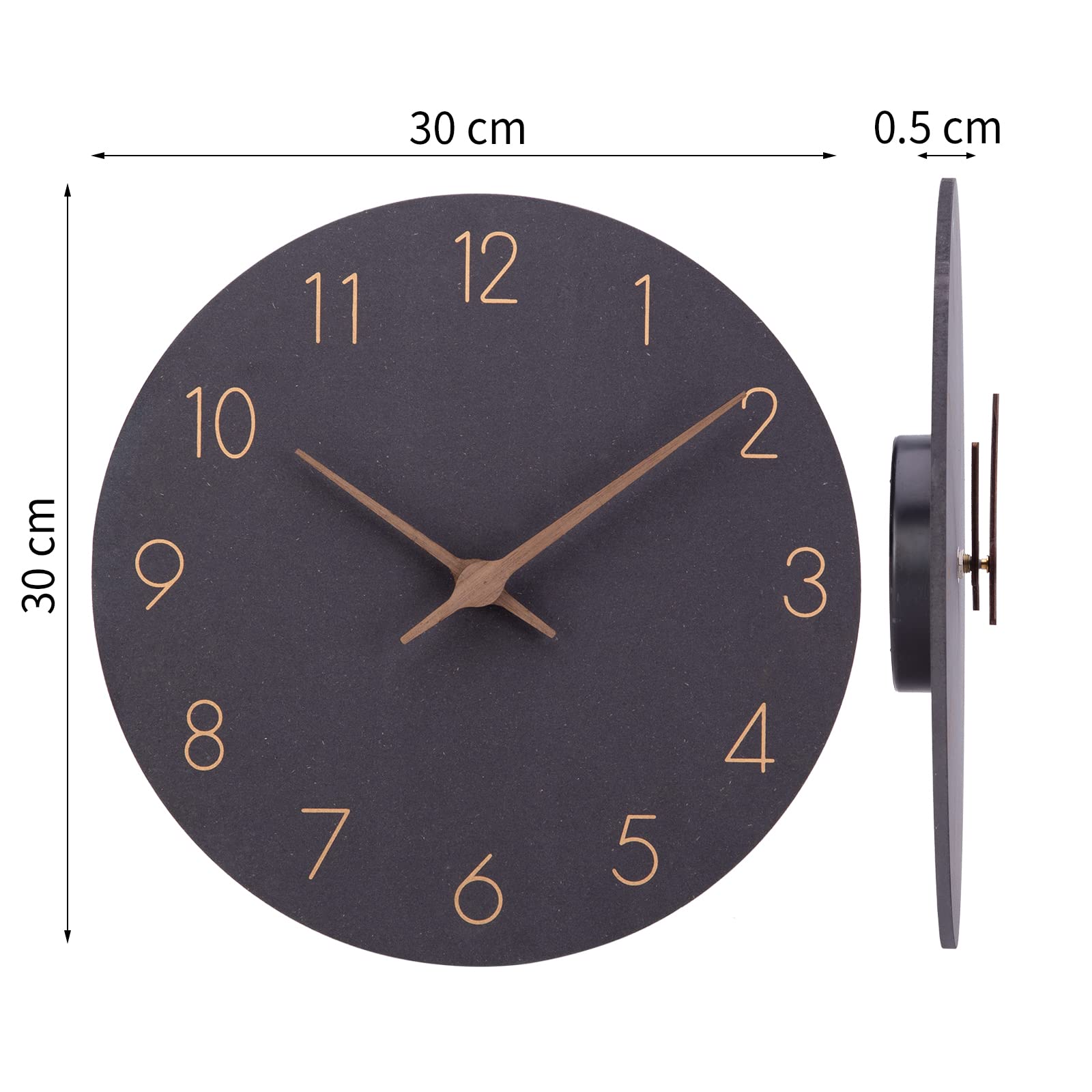 Holz Quarz-Wanduhr (30cm) ohne Tickgeräusche für Wohnzimmer, Küche: Batteriebetrieben