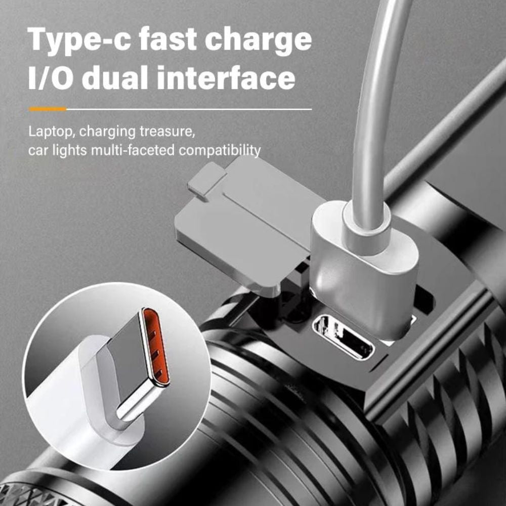 Grâce au mode de charge pratique de type C, la lampe de poche peut être rechargée rapidement et facilement.