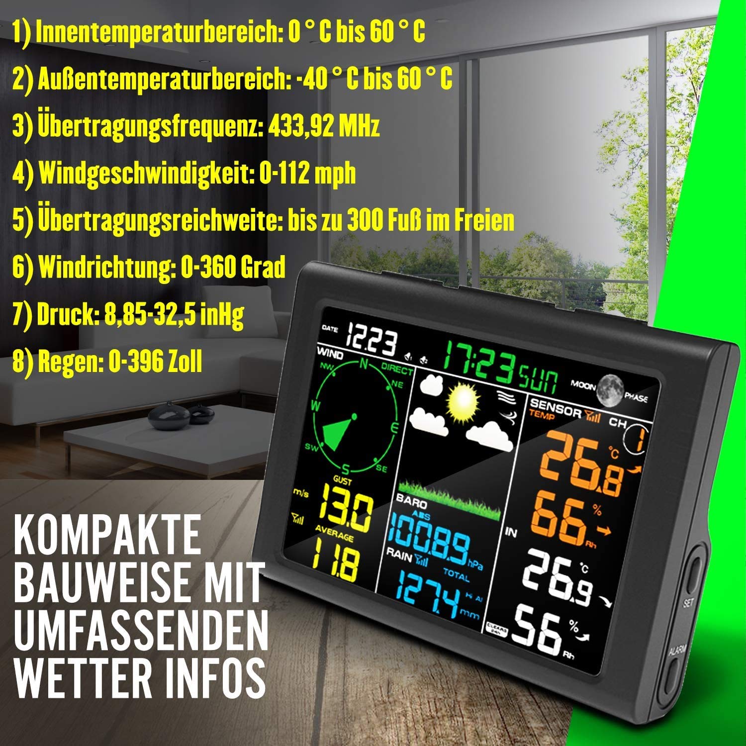 Sainlogic 9-in-1 Funk-Wetterstation mit Außensensor: Hygrometer, Mondphase