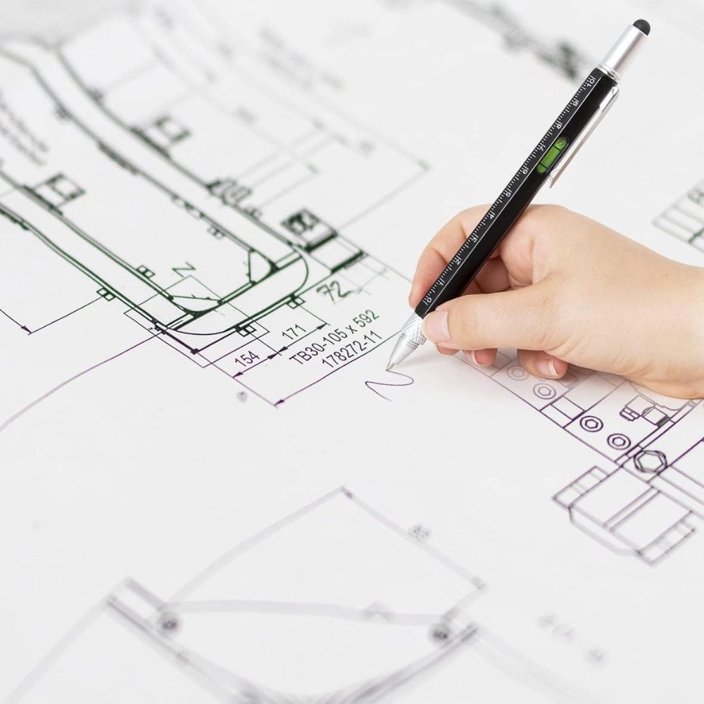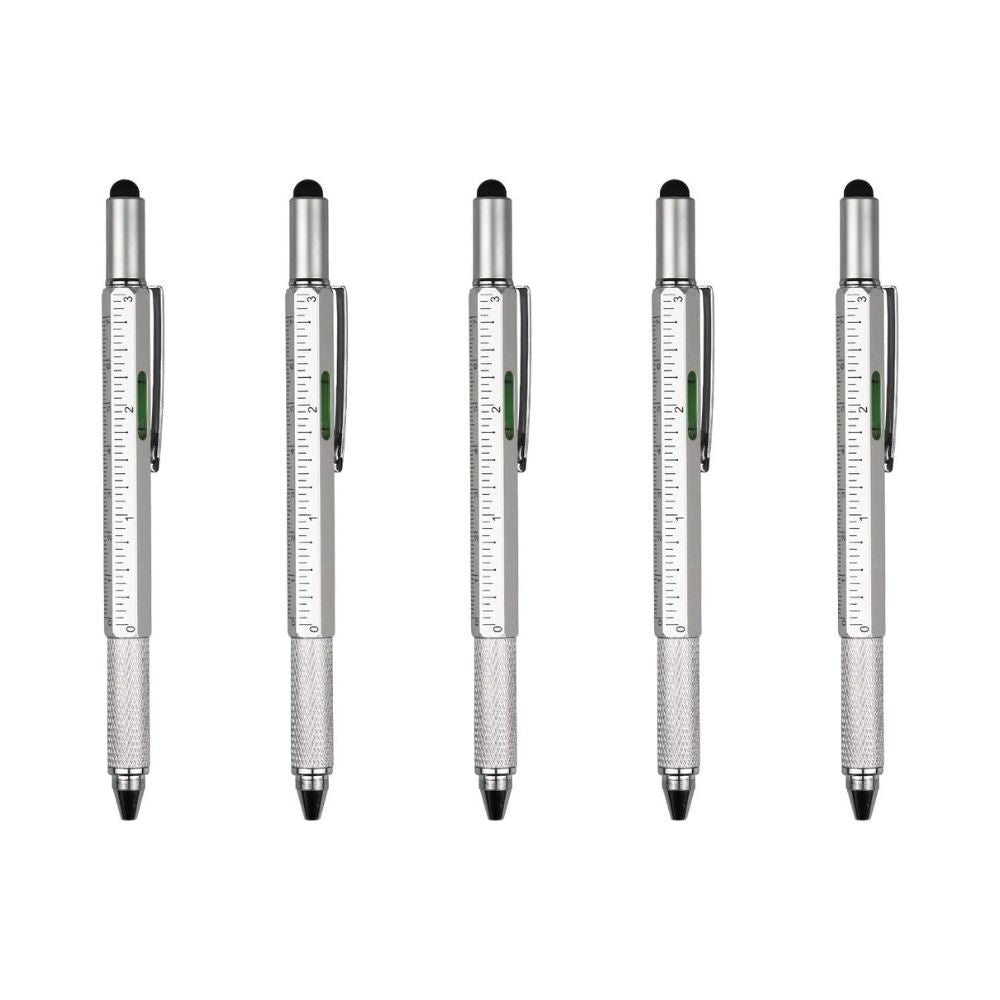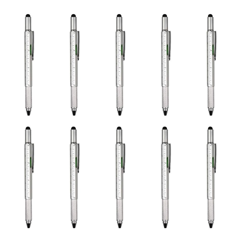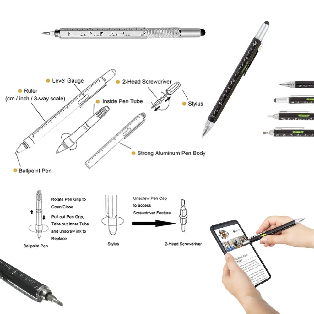 Stylo multifonction 6 en 1 : stylet tactile, tournevis (plat + cruciforme), règle, niveau à bulle, stylo à bille (GIF2)