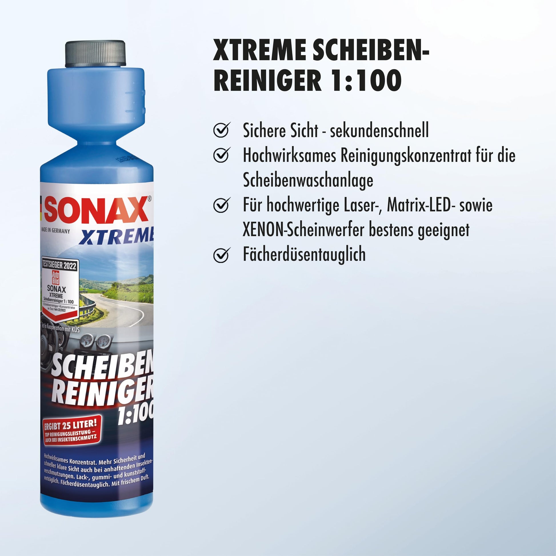 SONAX XTREME Scheibenreiniger 1:100 (250ml) ergibt 25 Liter Reinigungsflüssigkeit für klare Sicht