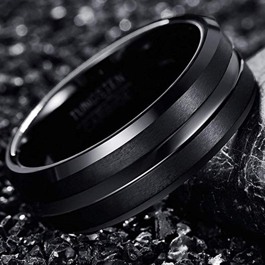Partnerring aus Wolframcarbid für Herren in Schwarz: Kratzfest (8mm - Größe 70-22.3)