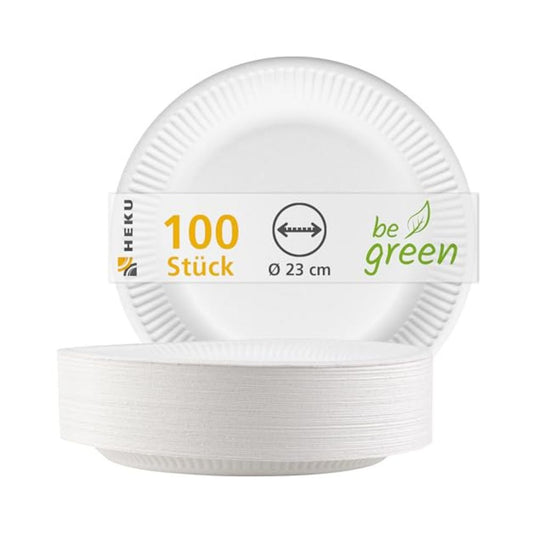 HEKU Pappteller (Ø 23cm, 100 Stück): 100% Kompostierbar | Umweltfreundliche Einwegteller
