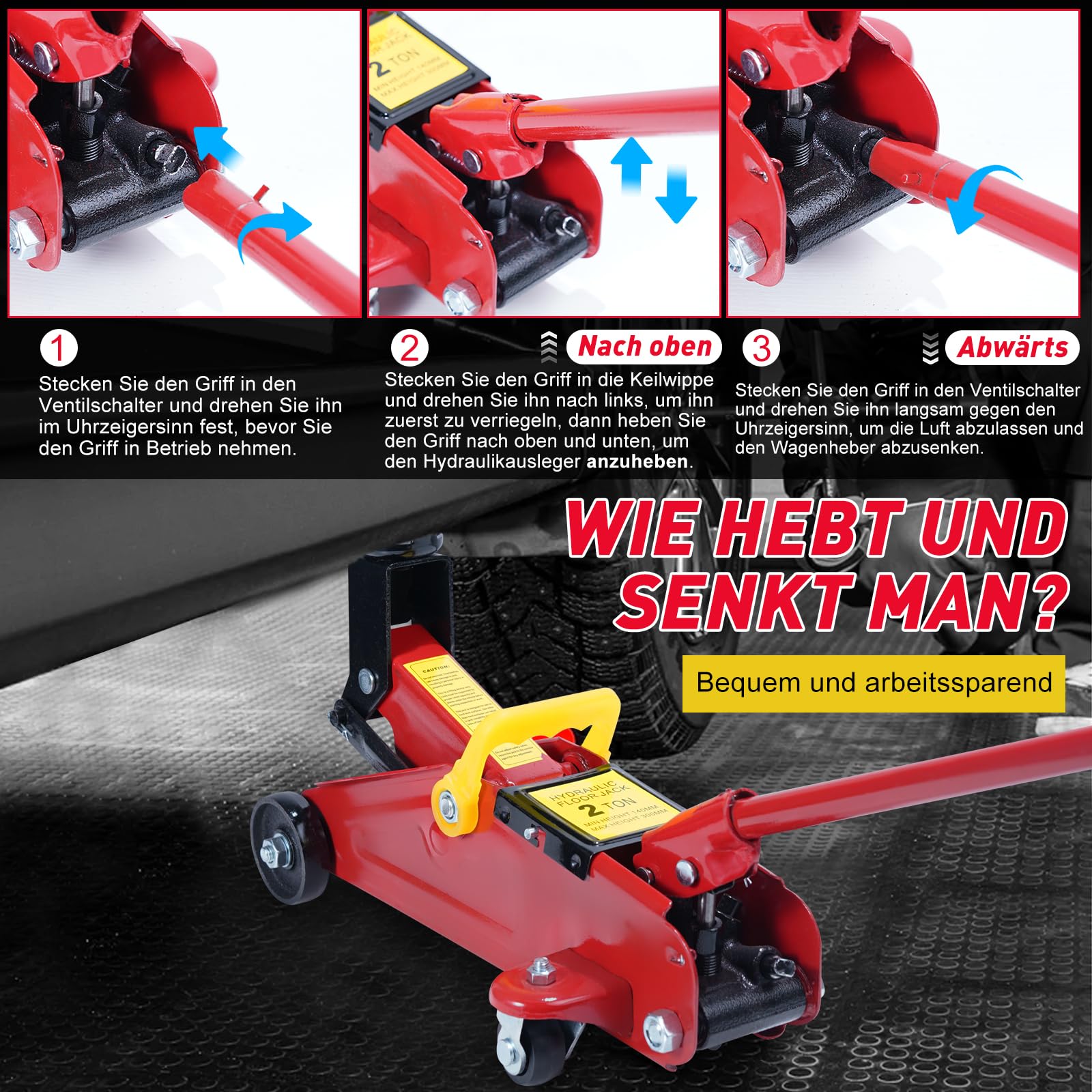 Großer Hebebereich: Verstellbarer Bereich von 5,3 bis 11,6 Zoll - ideal für Reifenwechsel und Wartungsarbeiten.