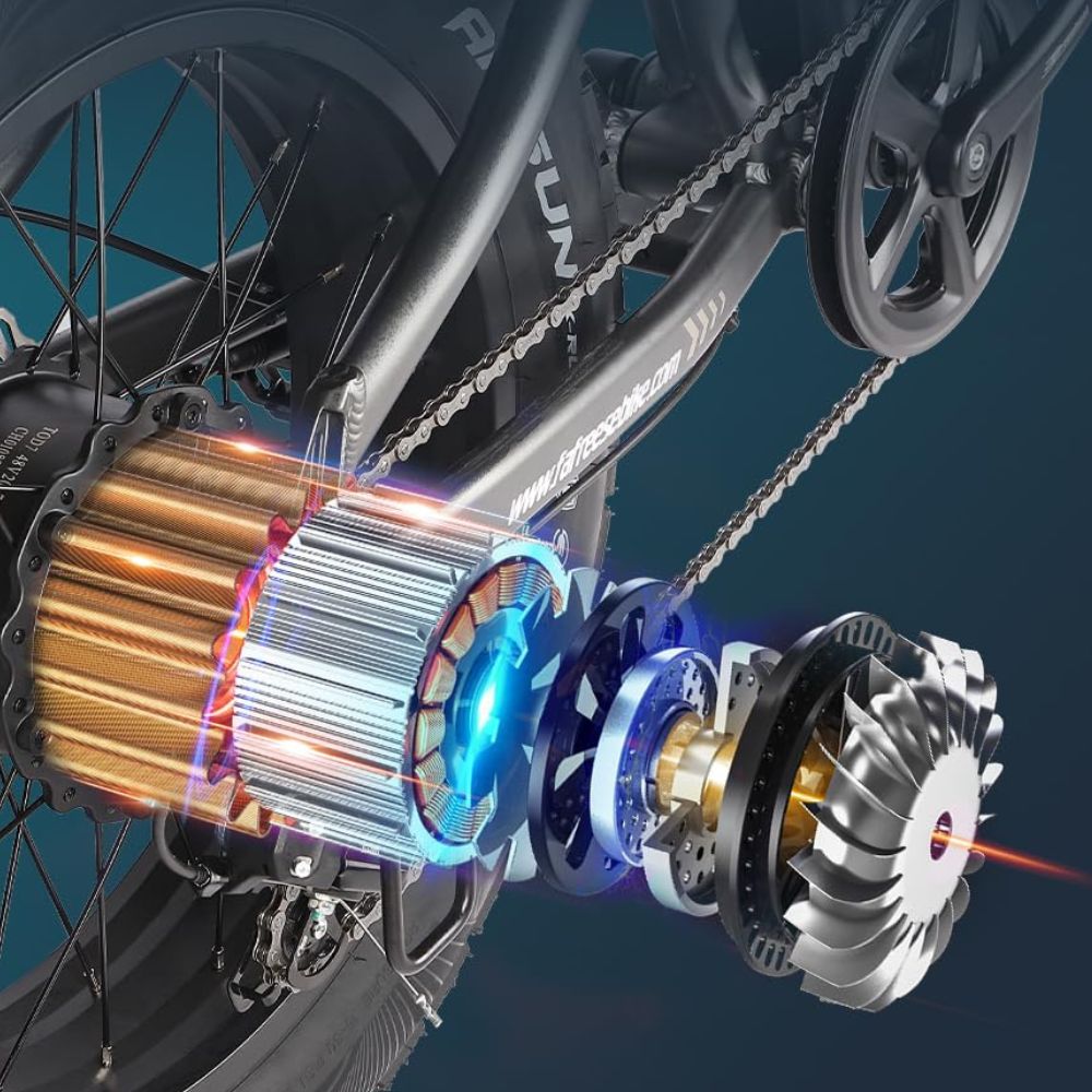 Das Fafrees F20 Ultra kombiniert kraftvolle Performance mit hoher Reichweite und maximalem Fahrkomfort. Der leistungsstarke Motor (79Nm), der große 48V 25Ah LG-Akku und 20"x5,0"-Fat-Tires sorgen für müheloses Vorankommen - auf jedem Terrain.