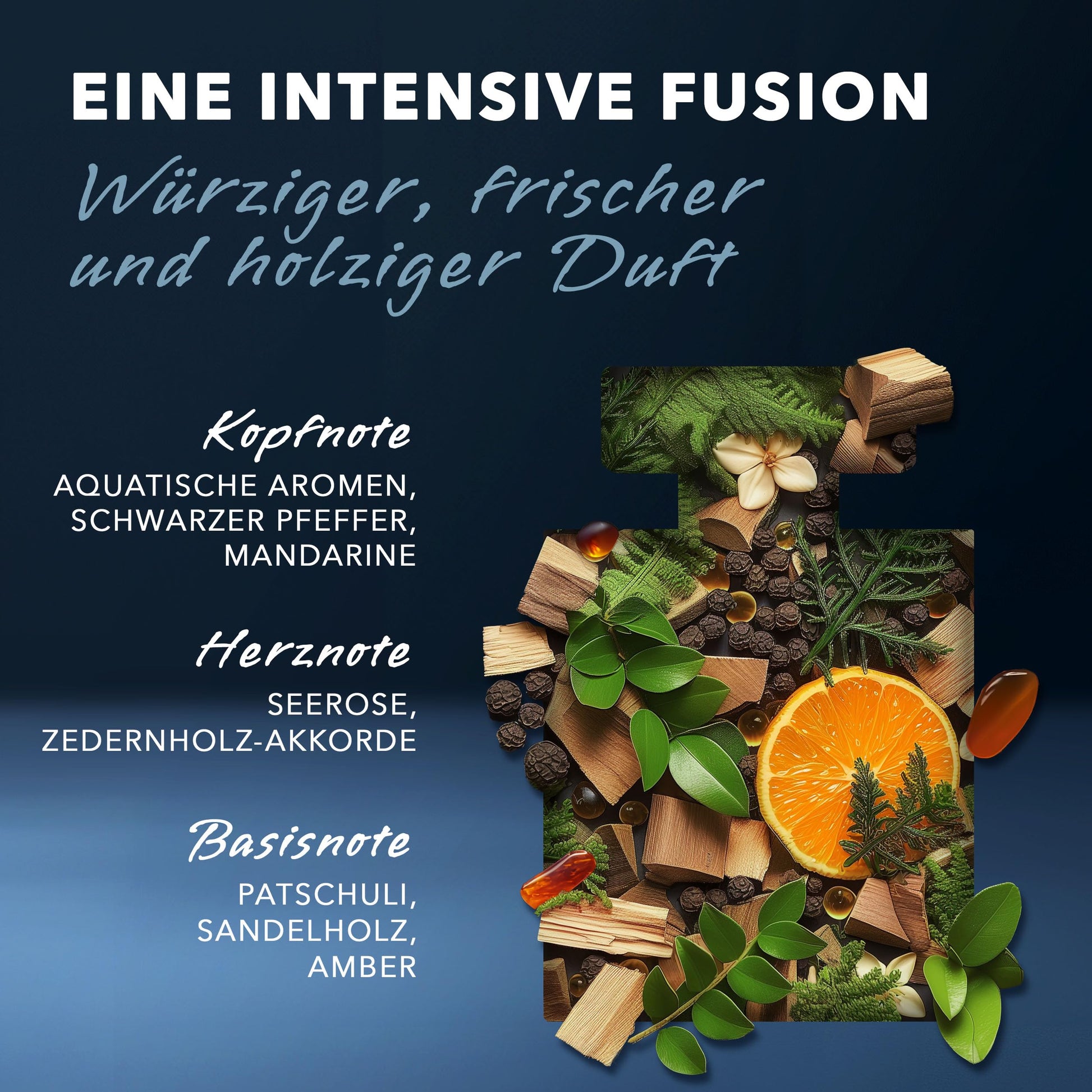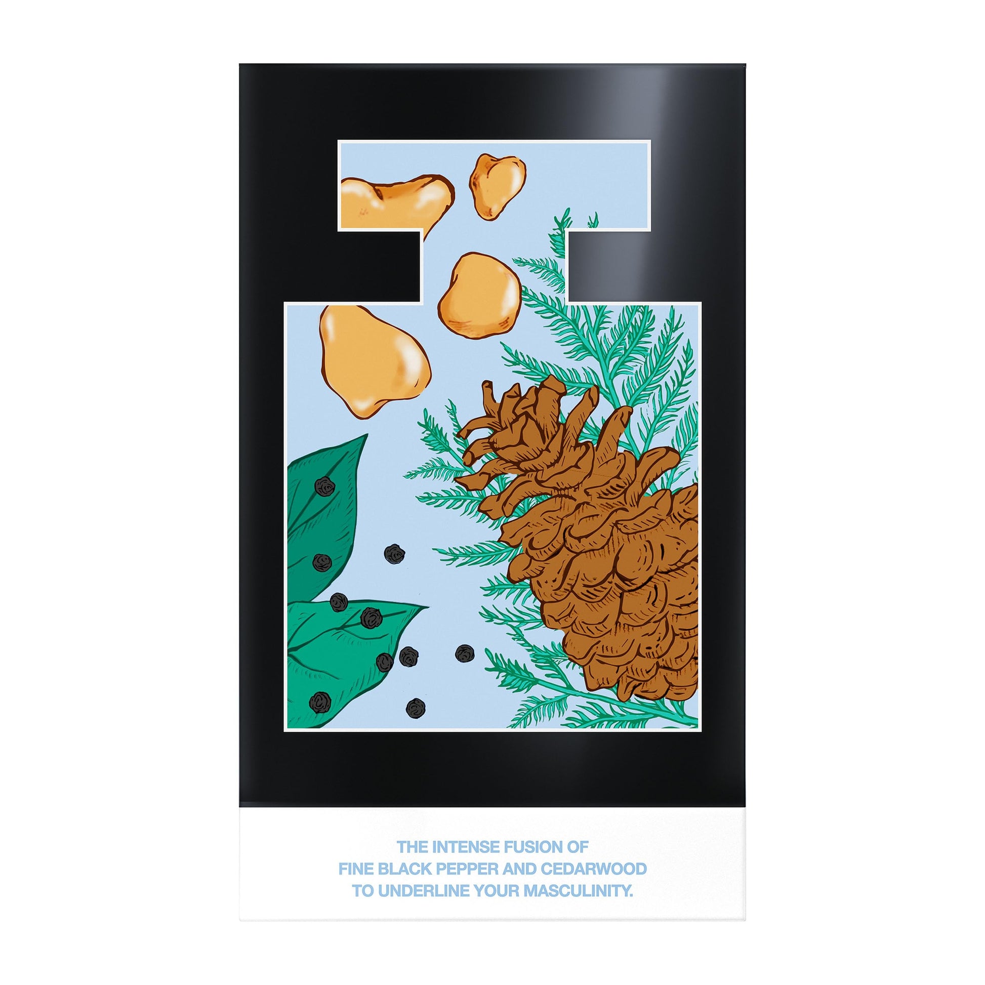 Kopfnote: Schwarzer Pfeffer, spritzige Mandarine und belebende aquatische Akkorde sorgen für einen frischen, dynamischen Auftakt.