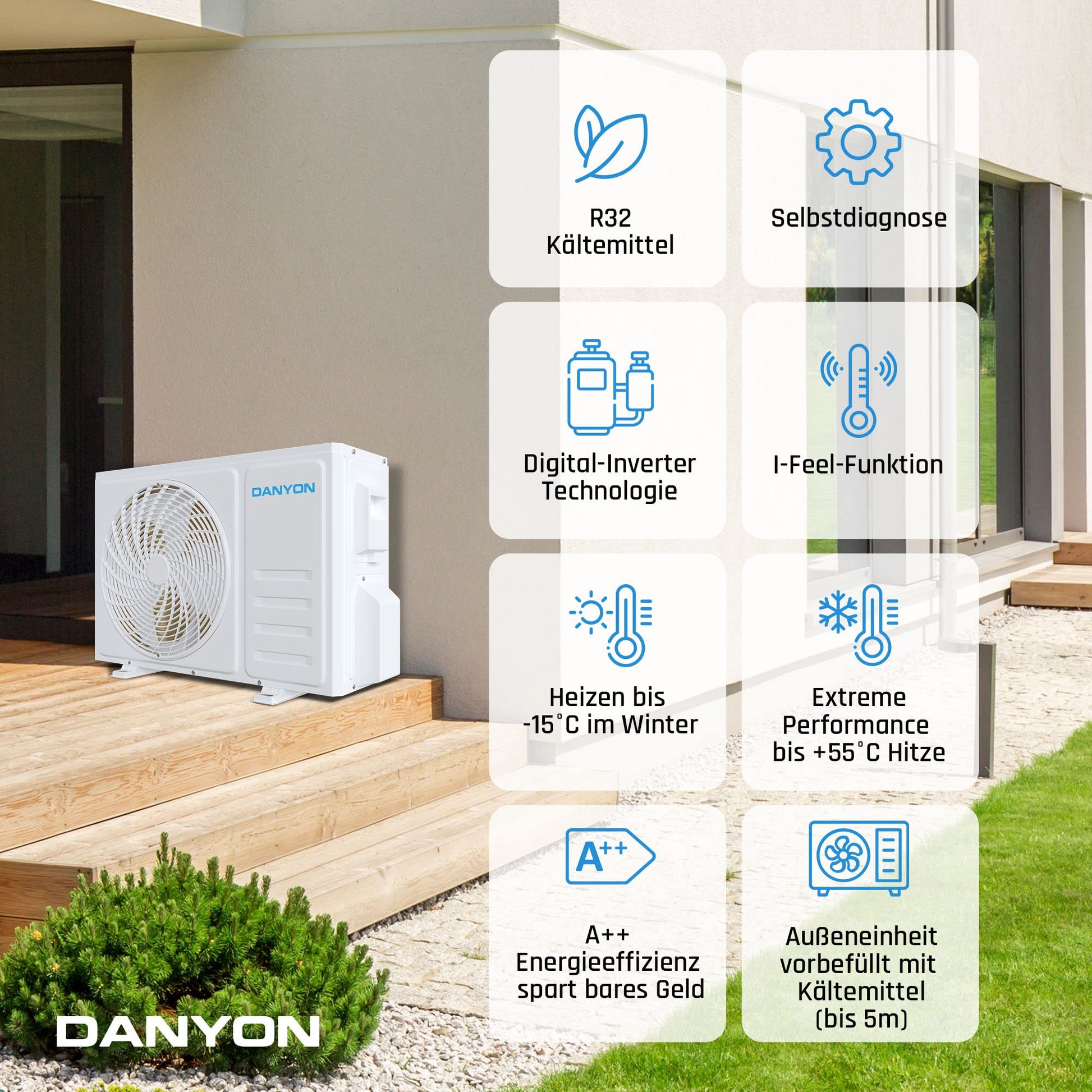 Die DANYON DA-DUO-XA35 ist die ideale Wahl für alle, die komfortable Klimatisierung, moderne Smart-Technologie und hohe Energieeffizienz in zwei Räumen gleichzeitig genießen möchten.