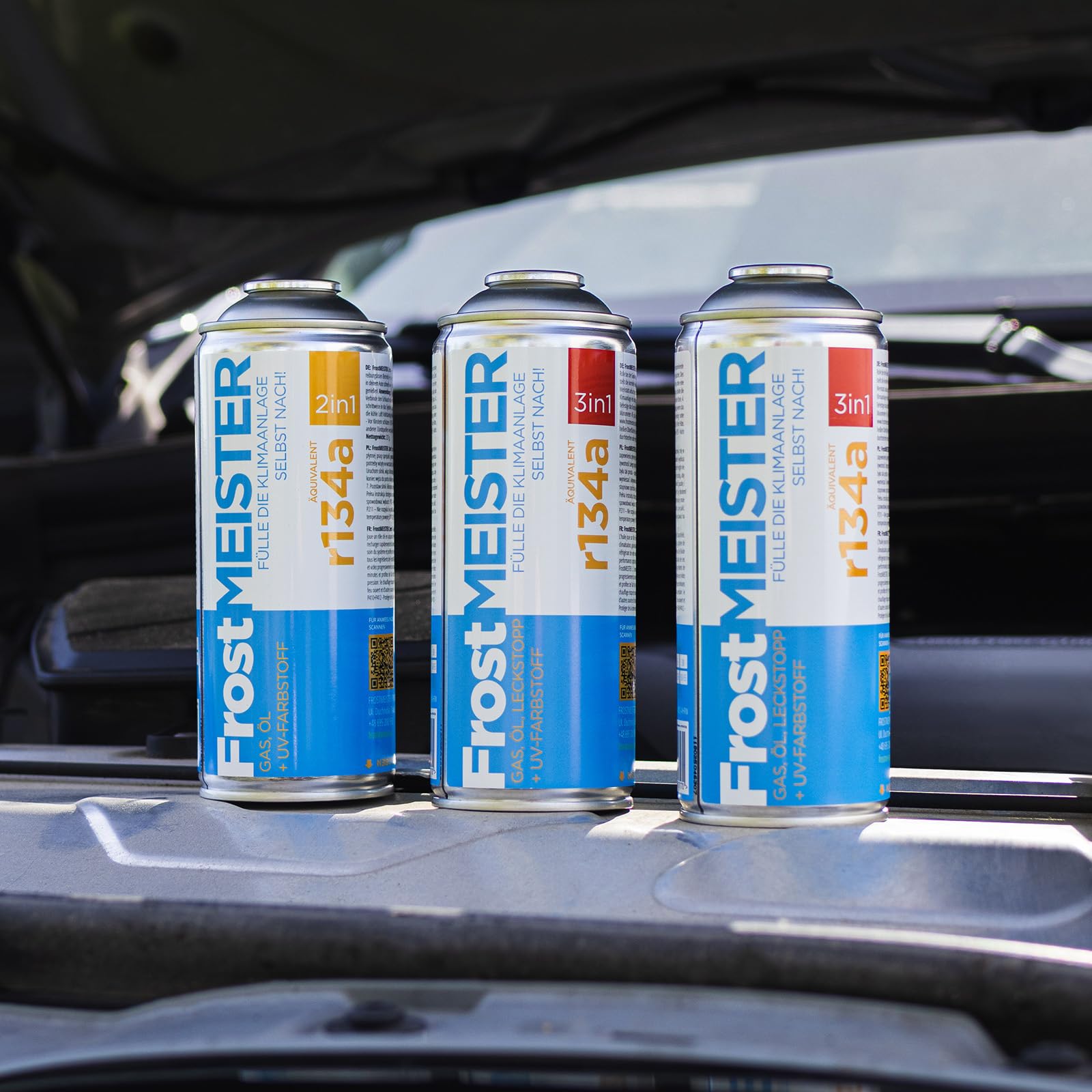 FrostMEISTER 3-in-1 Auto-Klimaanlage Nachfüllset für R134a (2x 400ml Dose & Schlauch mit Manometer)