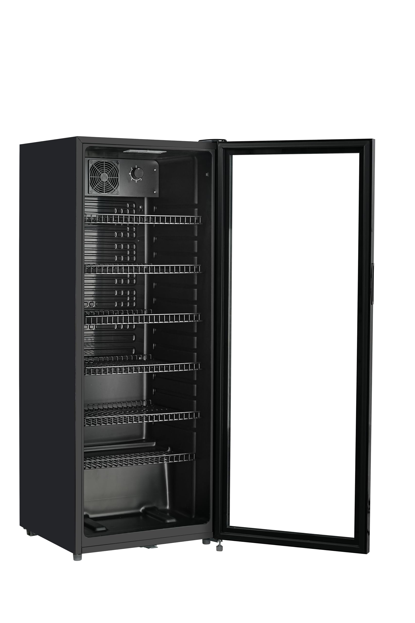 Die METRO Professional Kühlvitrine bietet effiziente Kühlung für Ihre Getränke und Lebensmittel mit einem Temperaturbereich von +4 °C bis +18 °C. Mit einer großzügigen 237 Liter Nettokapazität und 6 höhenverstellbaren Regalböden (mit einer Traglast von 25kg pro Regal) bietet diese Vitrine viel Stauraum. Die Innenmaße betragen 1281 x 453 x 363mm.
